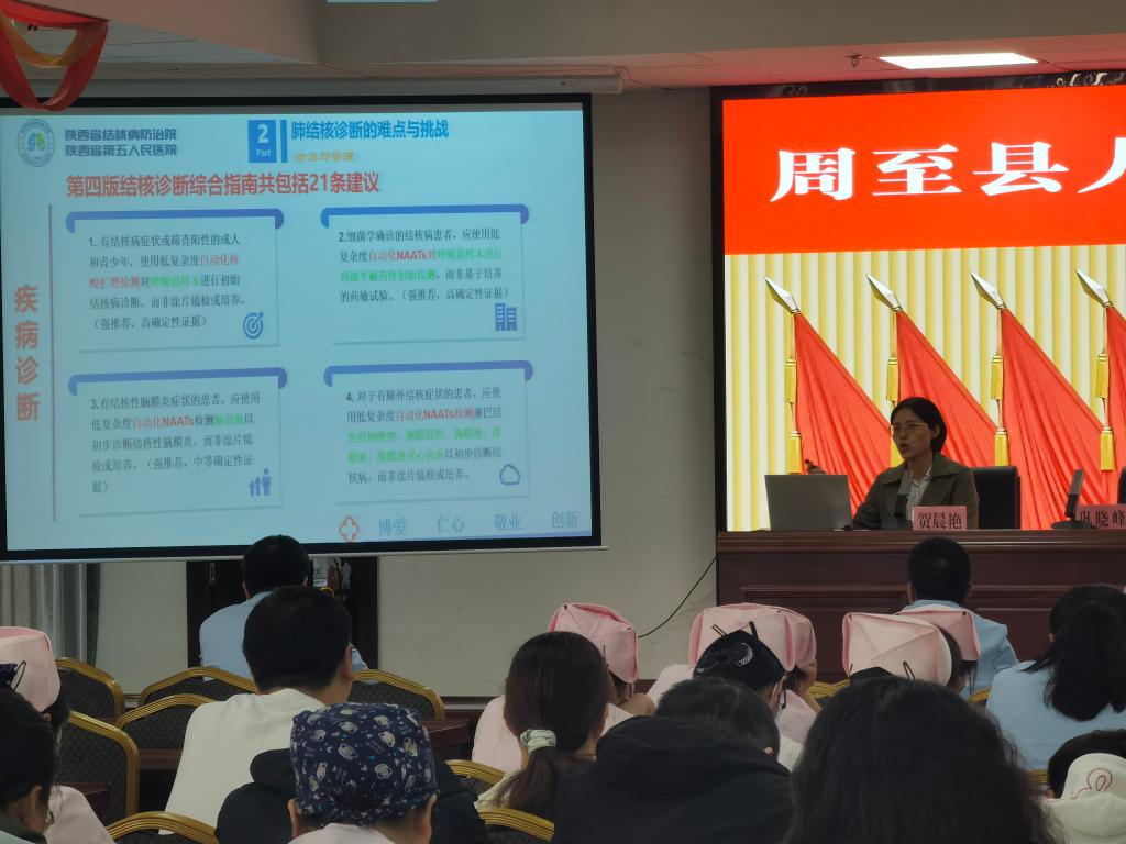 9月24日,陕西省结核病防治院内三科贺晨艳主任前往周至县人民医院,开展结核病诊治与管理专题授课,周至县人民医院相关科室医护人员参加培训。