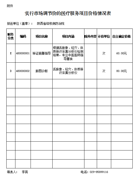 根据陕西省医疗保障局关于印发《陕西省医疗服务项目价格(2021版)》的通知,结合我院专科及中医治疗的特点,现将欲开展的医疗服务项目价格进行公示。