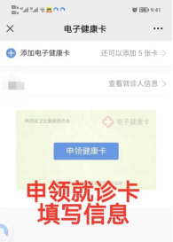 2、申领健康卡,填写就诊人信息(家属可添加新的健康卡),