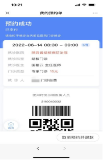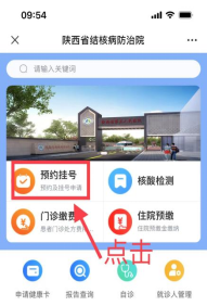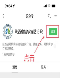 1、扫码关注“陕西省结核病防治院”公众号,点击“诊疗服务”