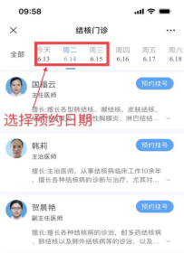 3、点击“预约挂号”,选择“就诊科室”,选择“就诊日期”