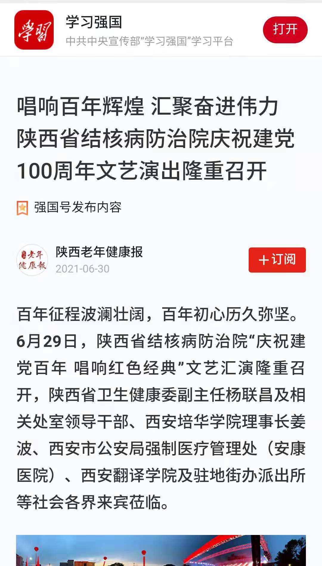 学习强国:陕西省结核病防治院庆祝建党100周年文艺演出隆重召开