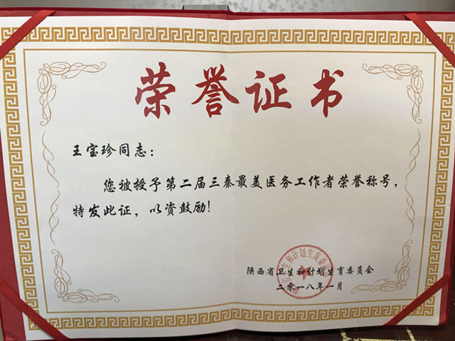 出席颁奖典礼的仵倩红副院长指出,此次陕西省结核病防治院的王宝珍同志获得“三秦最美医务工作者”的荣誉称号是对她工作态度和工作成绩的肯定,也是对陕西省结核病防治院全体医护人员的认可和鼓舞。在今后工作的各个方面,陕西省结核病防治院全体医护人员都将以王宝珍同志为榜样,以最饱满的热情和严谨的态度投入到工作中,做好本职工作的强大动力,立足岗位、贡献才智、建功立业,当好老百姓“健康守门人”,为提高人民群众健康水平,推进“健康陕西”建设做出新的更大的贡献。