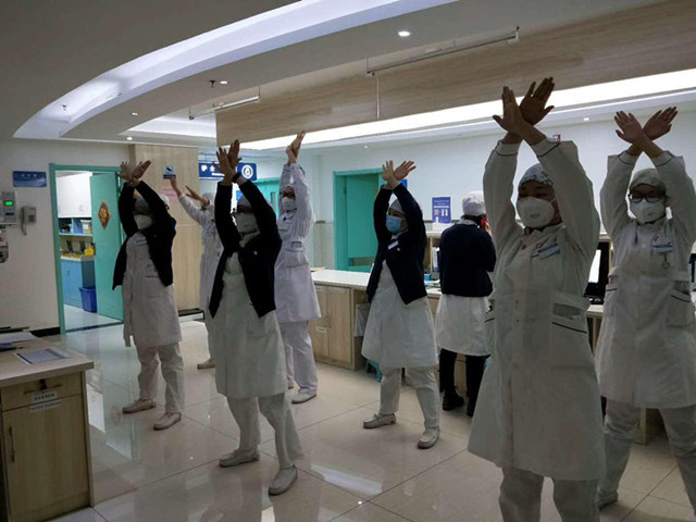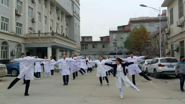 随着工间操响亮的口号,医院各科室的工作人员精神抖擞地踏着节奏,整齐地伸伸手,弯弯腰……这已成为医院上午十点的一道靓丽的风景。