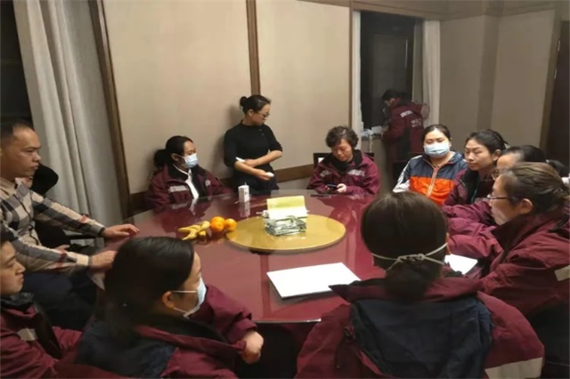 夜幕降临,贴心的王欣医生和尹霞顶着寒风,摸黑走很远的路,为全组成员购买所需的生活物品,让人感动!酒店服务人员全是武汉市青山区政府安排的志愿者,他们为援鄂人员打点好一切,自己顾不上喝水、吃饭,却总能及时地把每一餐的水和饭送到医务人员的房间,让人暖心!