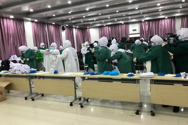 同时,联合护理部还对全院职工开展了防护用品穿戴和脱卸示教培训及考核,从1月23日至2月1日历时10天,完成了第一批至第三批援汉医护人员、抽调至隔离病房救治人员、发热门诊工作人员、预检分诊工作人员、其余全体临床科室及医技科室医护人员、相关辅助科室人员(如医疗废物相关管理人员、保洁人员、洗衣房工作人员、消毒供应室人员、污水站相关管理人员、保卫科工作人员)等共计430人的培训及考核工作。