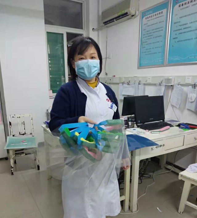 当前,新型冠状病毒感染的肺炎疫情防控正处于关键期。面对疫情加快蔓延,市场防护物资紧缺的严重形势,设备科工作人员集思广益,就地取材,利用废旧胶片、海绵条、一次性止血带、双面胶等材料现场DIY,制作防护面屏,助力一线医护人员打赢疫情防控攻坚战。