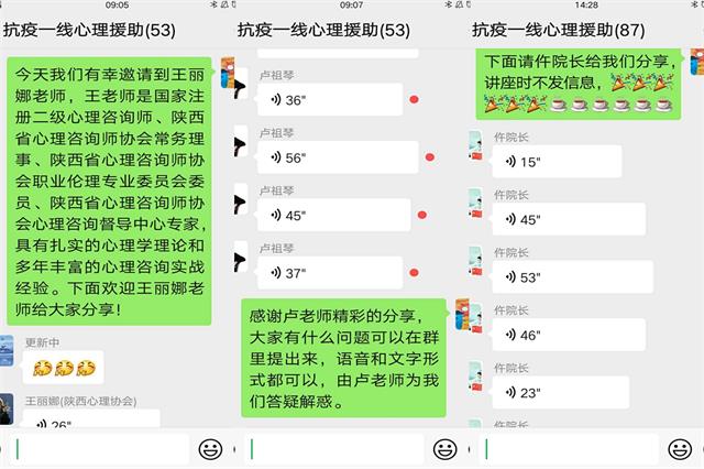 疫情防控工作开展以来,医院党员职工纷纷响应号召,积极申请奔赴疫情一线,一线医务人员一直坚守奋战在疫情防控工作中,为消除他们的焦虑和紧张情绪,让大家保持良好心态投入到工作生活中,由院党委办公室组织,邀请陕西省心理咨询师协会的心理咨询师卢祖琴、王丽娜老师和我院副院长、三级心理咨询师仵倩红分别以《积极心理助你缓解疫情压力》、《奋战中的白衣天使如何保护身心健康》和《抗疫期间照护好自己的心灵》做了精彩的线上讲座,为全面打赢疫情防控阻击战提供了强大的精神动力和心理支撑。